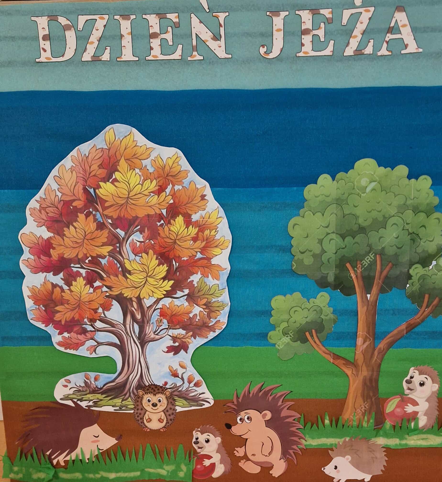 10 listopada mają swoje święto te kolczaste zwierzątka, bardzo sympatyczne i pożyteczne. Tego dnia dzieci miały okazję poznać co jedzą jeże oraz ich sposób poruszania się, podczas zabaw i pląsów – „Idzie jeż tup, tup, tup”.  Była też zabawa pt.” Na dywanie siedzi jeż….”. Z pomocą cioć dzieci wykonały piękne jeżyki z odbitych rączek.