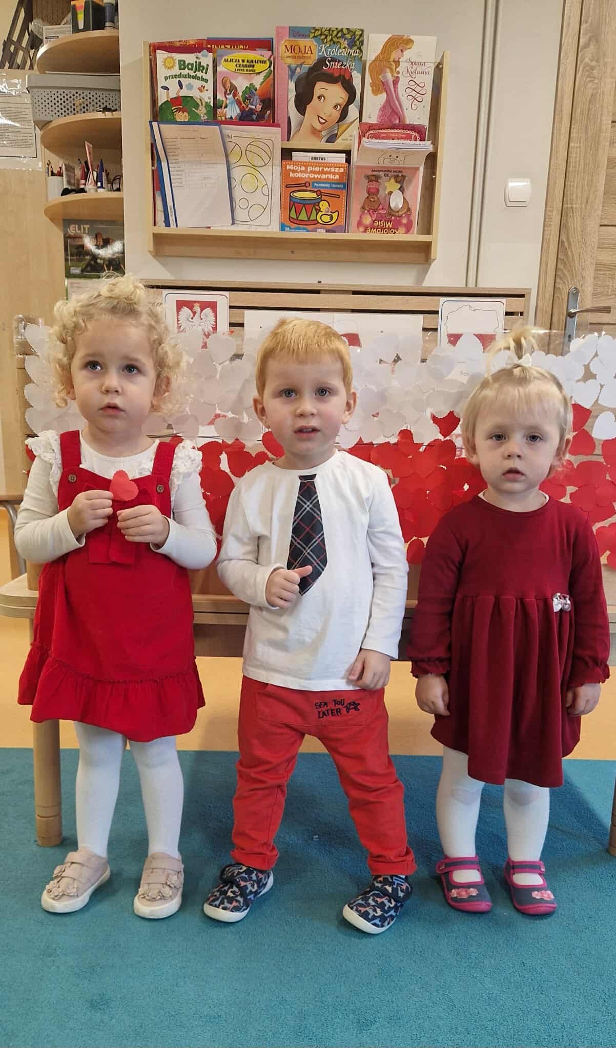 11 listopada obchodzimy Narodowe Święto Niepodległości. Na zajęciach maluszki poznały nasze Symbole Narodowe. Następnie wszyscy wspólnie ozdobiliśmy flagę Polski biało-czerwonymi serduszkami. Na zakończenie dzieci w odświętnych strojach zatańczyły do piosenki o tematyce patriotycznej.
